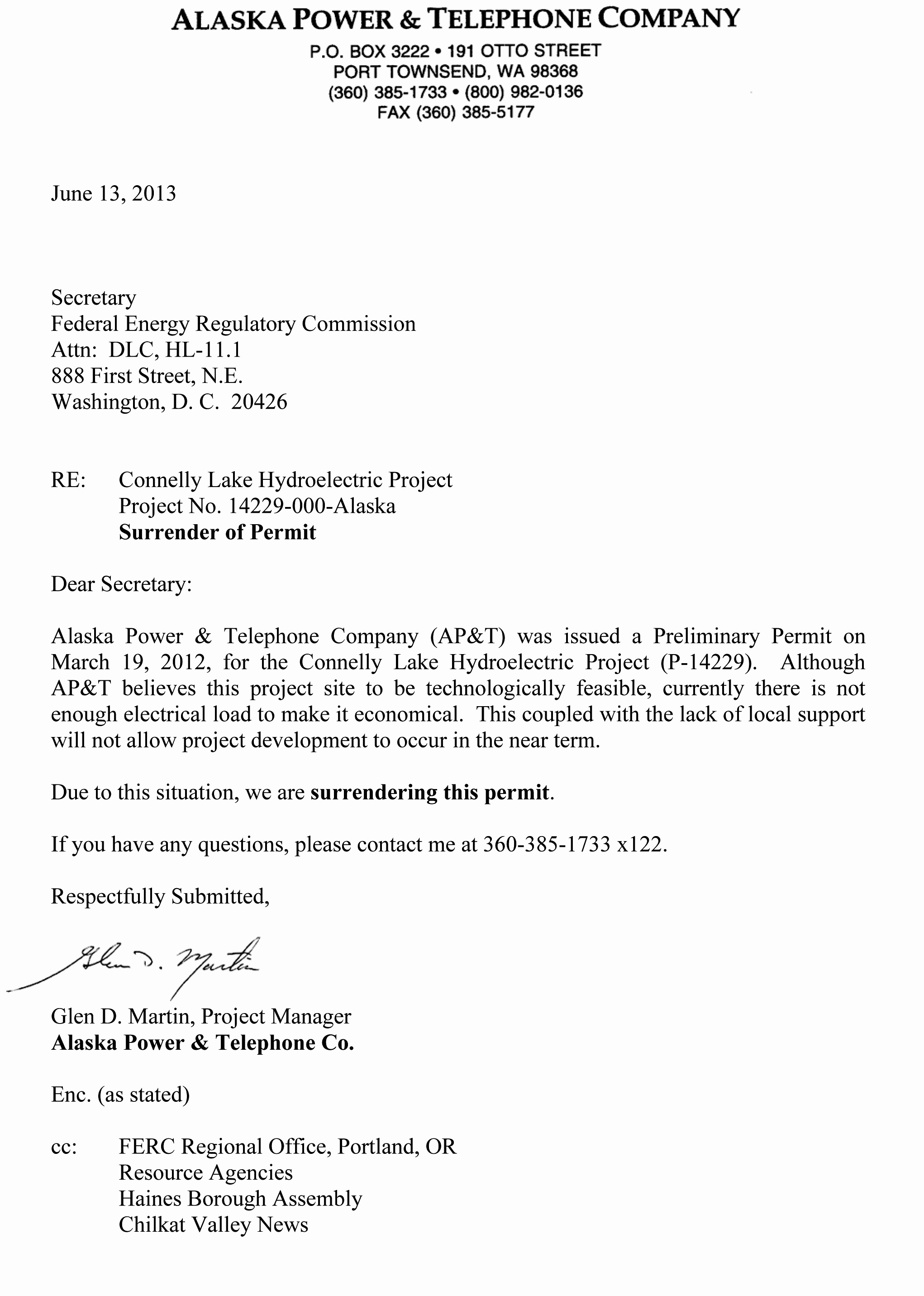 To access submitted documents, go to www.ferc.gov. Click on e-library. Enter docket number P-14229.